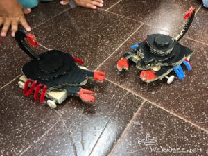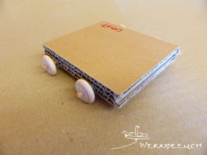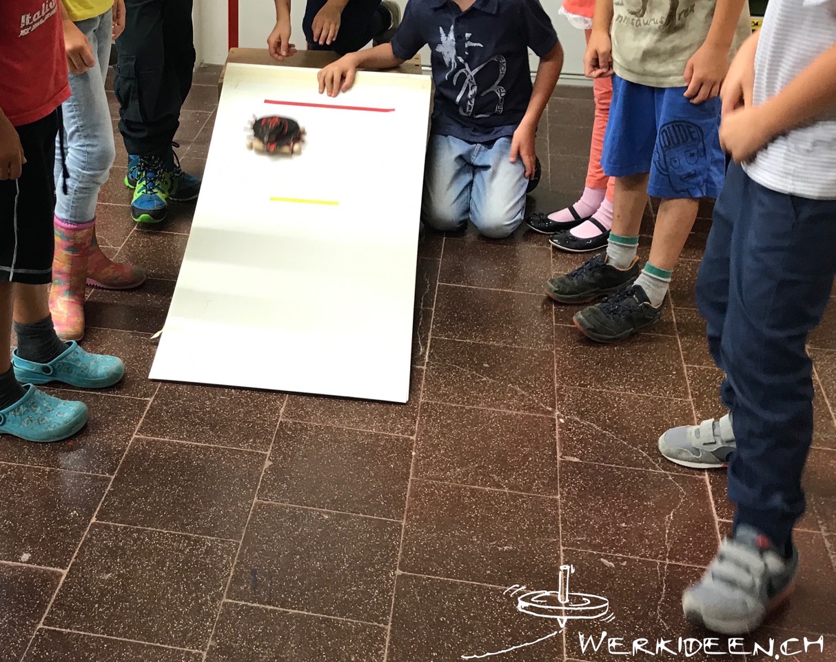 Veranstaltet einen Rollwettbewerb. Welches Tier rollt am weitesten? Versucht, die Reibung zu verkleinern, indem ihr z.B. die Achsen anders lagert oder Unterlagscheiben verwendet.