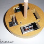 Entwickle einen Leuchtkreisel. Baue zwei bis drei Leuchtdioden in einen Stromkreis ein. Damit der Kreisel sauber dreht, machst du am besten eine symmetrische Anordnung der Löcher und verwendest eine zweite Batterie aus Gewichtsausgleich. Du kannst aber auch den Kreisel entwickeln und am Schluss auf einem Nagelkopf zentrieren, um die exakte Mitte zu bestimmen.