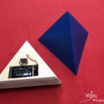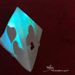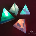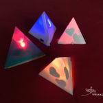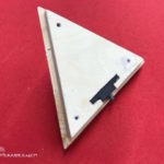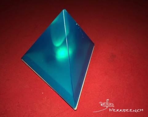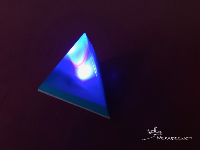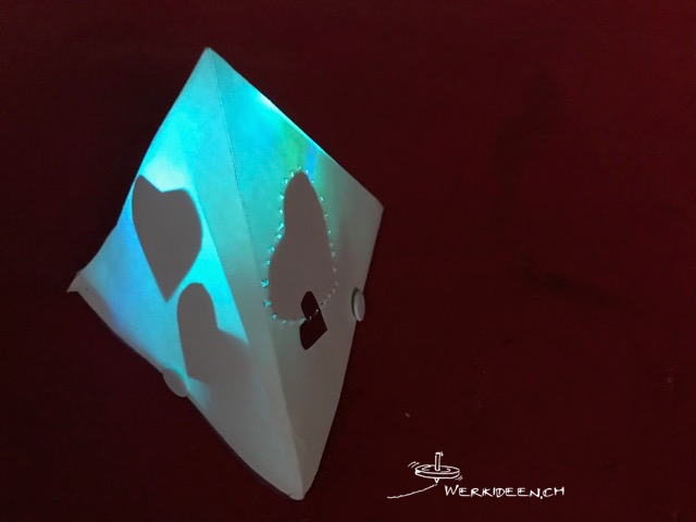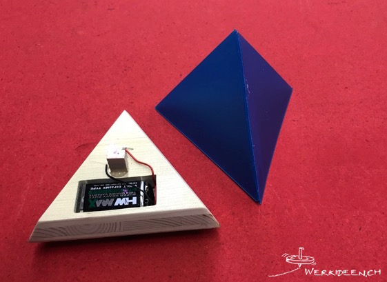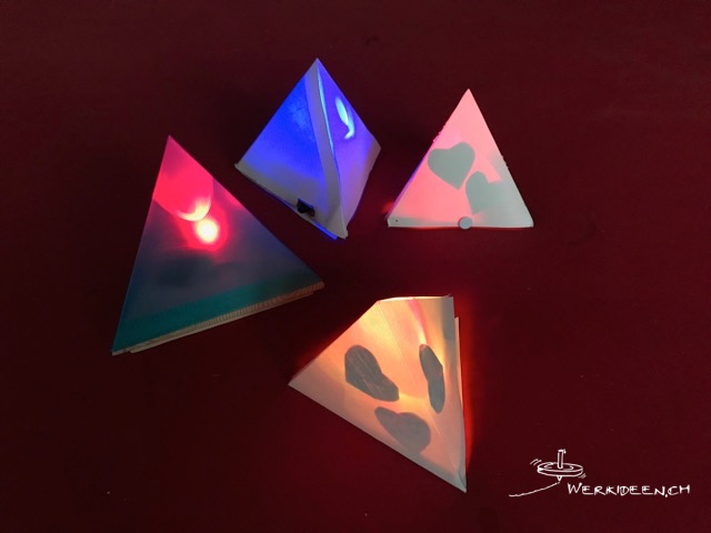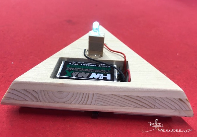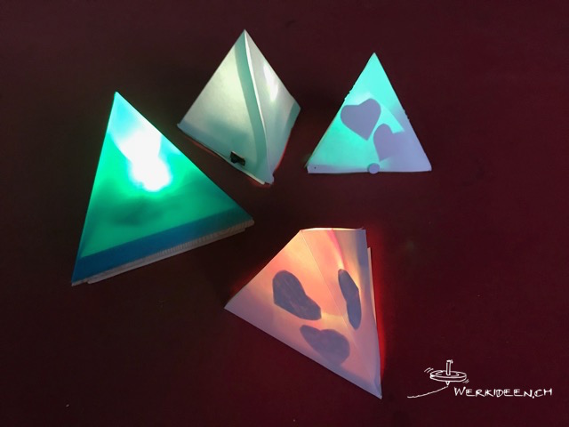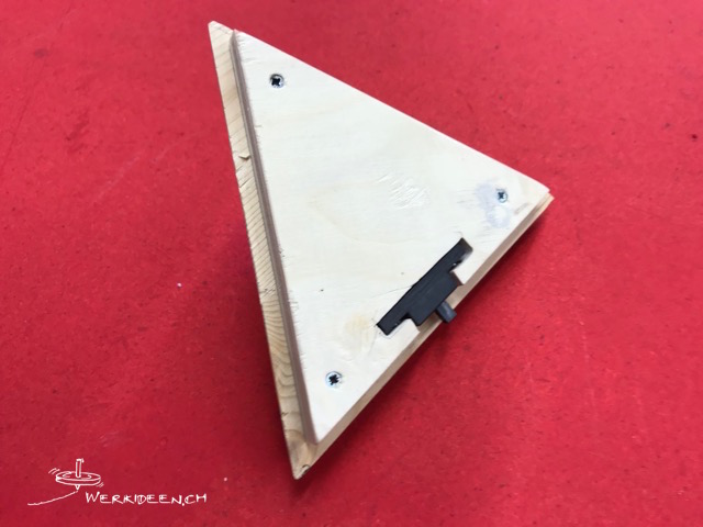 Entwickle ein Tischlämpchen in Dreieck-Form. Säge mit Schrägschnitt auf der Decoupiersäge die Bodenplatte zurecht. Wähle als Grundform ein gleichseitiges Dreieck. Schleife die Grundplatte und montiere den Stromkreis inkl. Schalter. Entwickle nun aus Papier den Lampenschirm. Entwickle zuerst aus Kopierpapier die Abwicklung, übertrage sie dann auf Zeichnungs- oder Aquarellpapier oder auf eine dünnen Kunststoff-Platte aus. Biege den Lampenschirm und montiere ihn am Grundbrett.