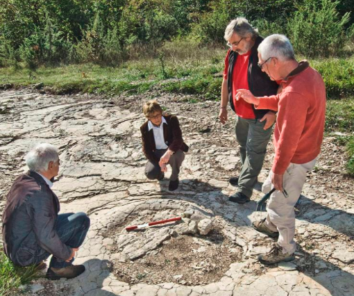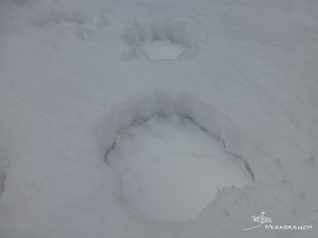 – Sägt als Klassenarbeit aus einer grossen Platte einen Dinosaurier-Fussabdruck in der richtigen Grösse und legt damit eine Spur im Schnee.