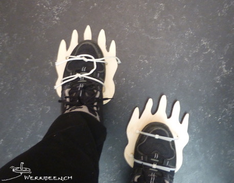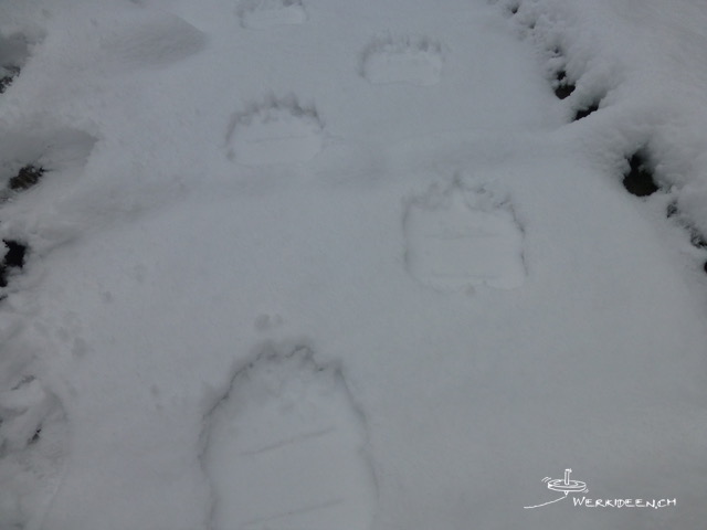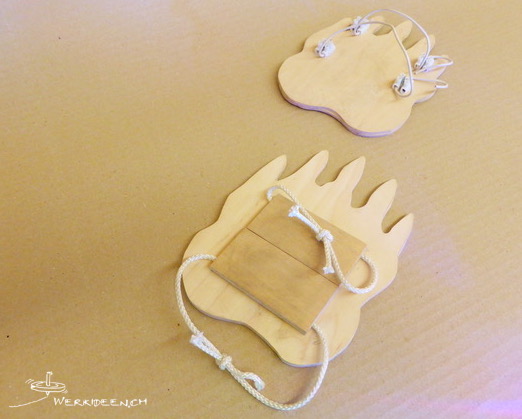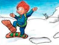 Baue gemäss der Idee von Sams aus dem Buch „Ein Sams für Martin Taschenbier“ von Paul Maar zwei Tierfüsse und montiere Schnüre oder Bänder, so dass du die Holzplatten an deine Schuhe montieren kannst. Lege nun im Schnee eine Fährte, die deine Klassenkameradinnen und Klassenkameraden suchen müssen.