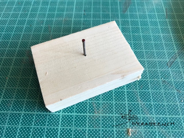 MDF-Holzplatte ca. 20x 20 cm, Dicke ca. 10 mm, Holzrundstab 10 mm, Schnur, evtl. LED, Knopfbatterie, Minischalter, Elektrikerdraht.