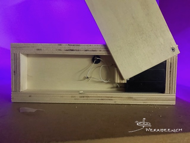 Sperrholzplatten, schwarze MDF-Platte 8 mm (z.B. von Jumbo oder Coop Bau und Hobby), Mini-LED-Lichterkette , evtl. ein Stück von einer Lichterkette mit USB-Anschluss (kann an eine 4.5 Volt-Batterie angeschlossen werden), Batterie, Schalter, Elektrikerdraht