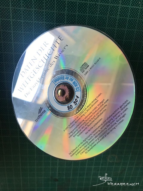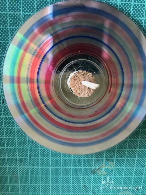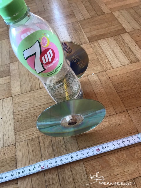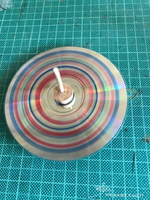Tüftelidee: Gestalte deinen CD-Kreisel mit wasserfesten Filzstiften, mit Klebefolie oder mit Aufklebern. Beachte die Farbveränderung, wenn sich der Kreisel dreht und erstelle spannende Muster.