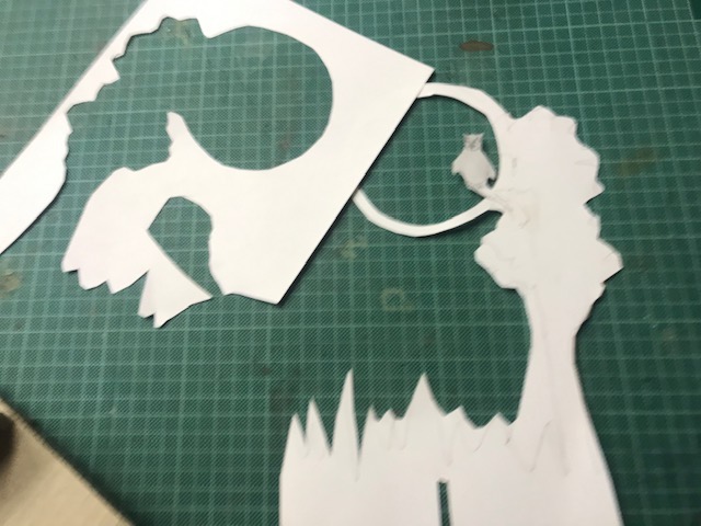Entwickle ein Schattenbild für deine Zimmerwand. Dazu brauchst du eine Taschenlampe sowie dickes Papier, Karton, Wellkarton und evtl. Holzspiesschen. Zeichne ein Sujet auf dickes Papier oder Halbkarton auf und schneide es mit Cutter oder Schere aus. Stelle aus Wellkarton Kreuzständer her und fixiere dein Sujet daran. Mit Spiesschen kannst du die grossen Teile einfach befestigen. Stelle die Taschenlampe vor deine Installation und projiziere dein Schattenbild an die Wand. Entwickle weitere Teile, fixiere sie mit Stecknadeln oder bewege sie an einem Faden durch dein Schattenbild.