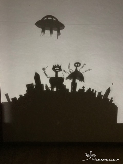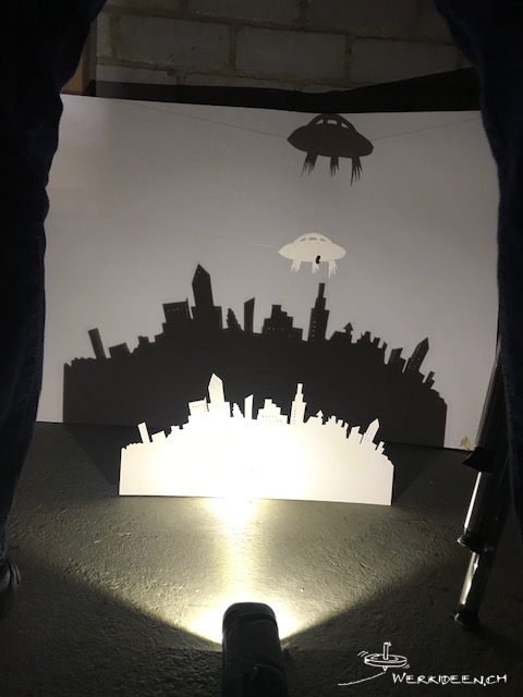 Wir starten  einen kleinen Gestaltungswettbewerb. Falls du beim Wettbewerb mitmachen willst, musst du dich für eine der beiden Kategorien Tiere oder Ausserirdische entscheiden. Maile ein Foto, evtl. ein Video deines Schattenbildes / deiner Installation an info@werkideen.ch. Eine Jury wird in jeder der beiden Kategorien die drei interessantesten Schattenbilder küren.