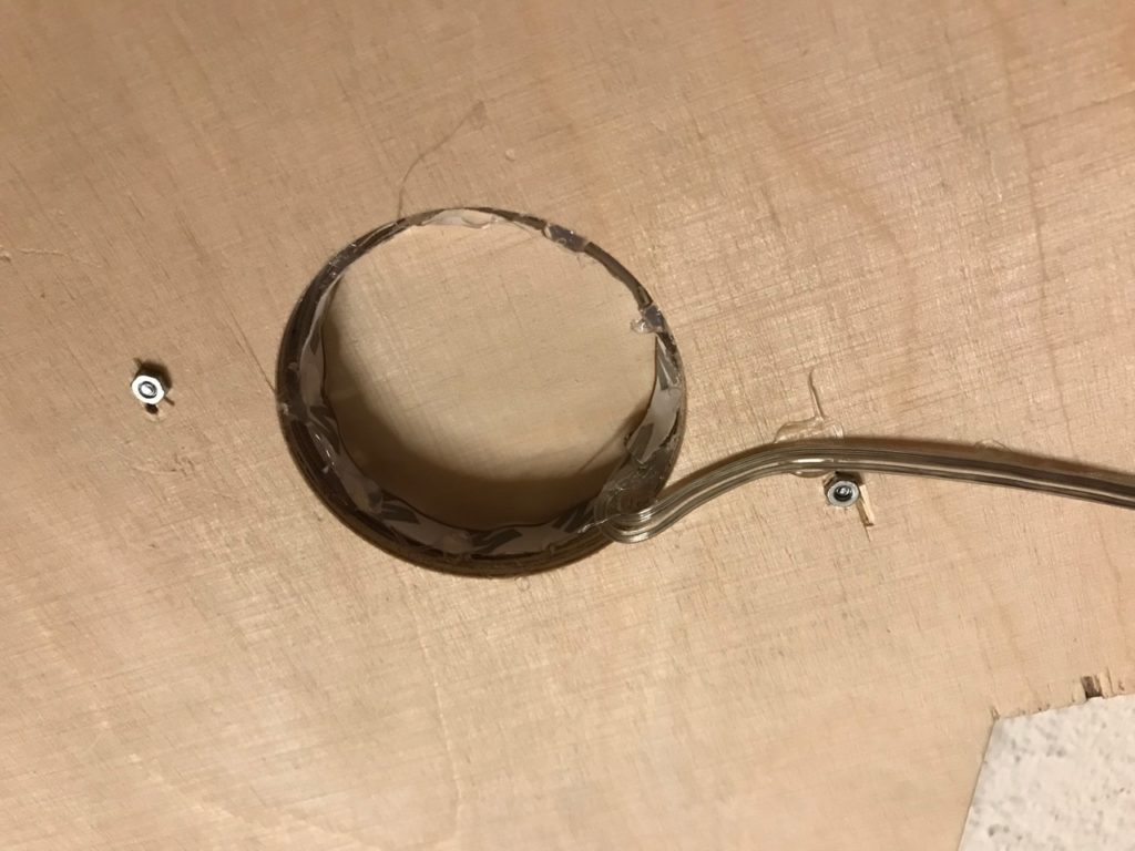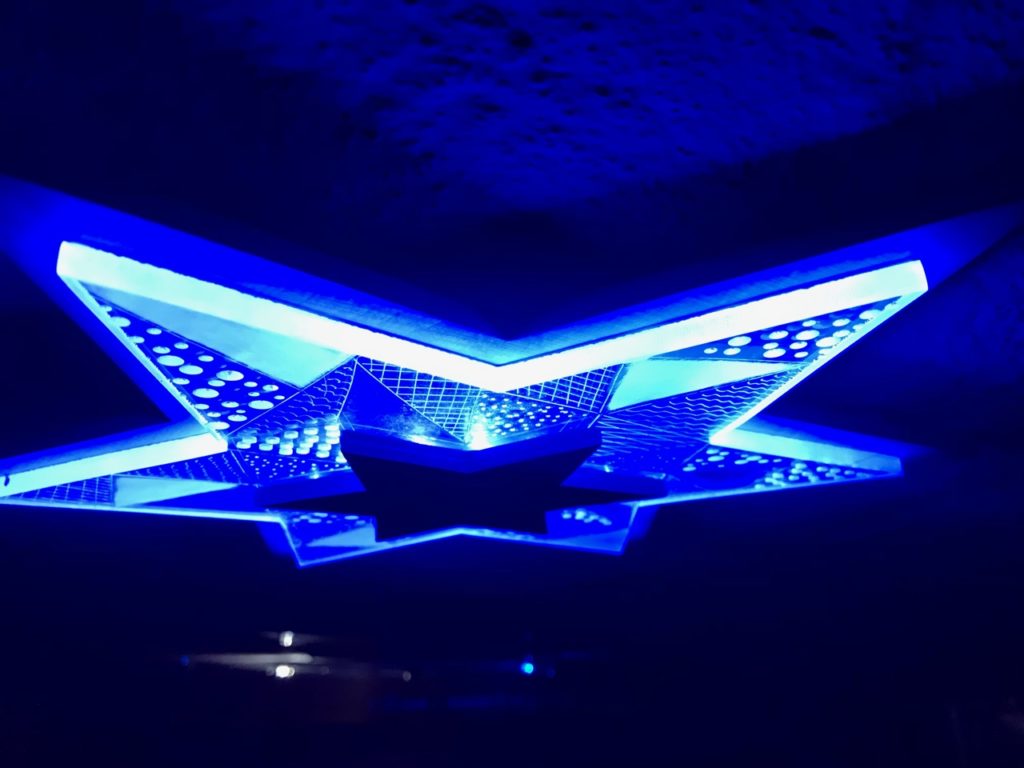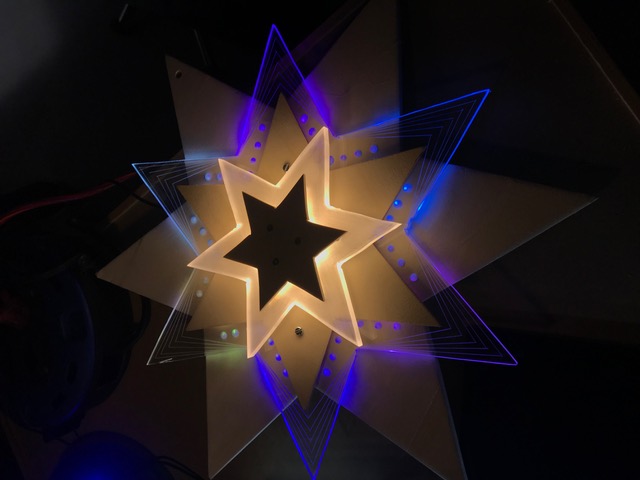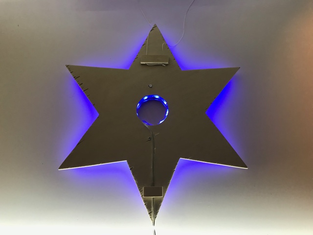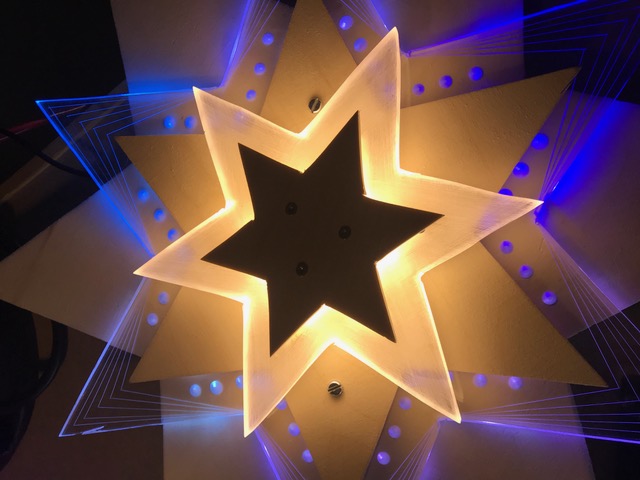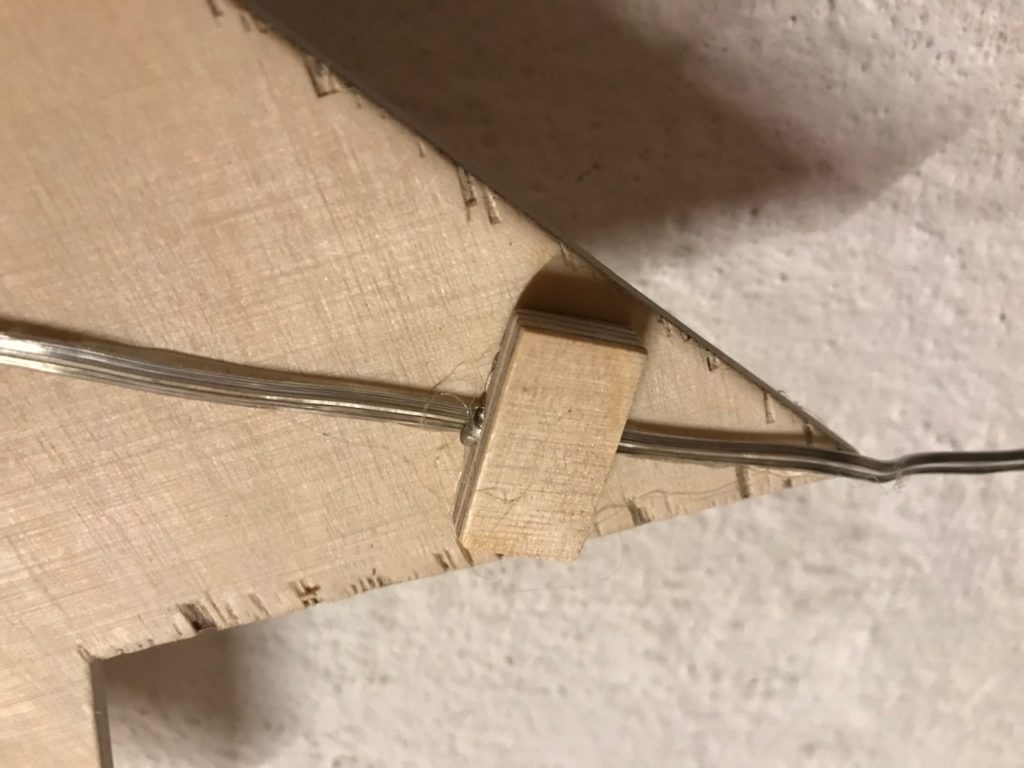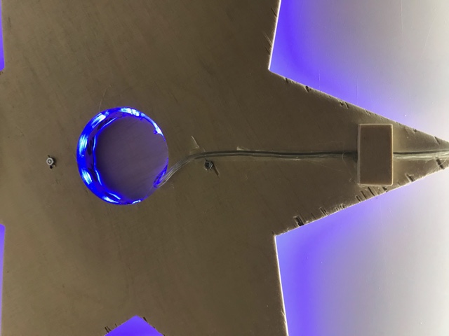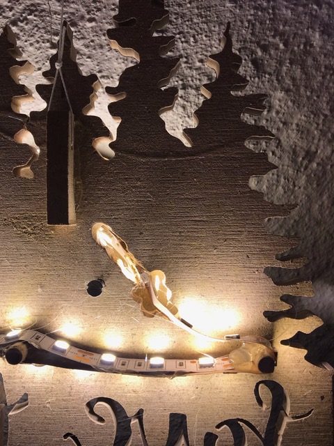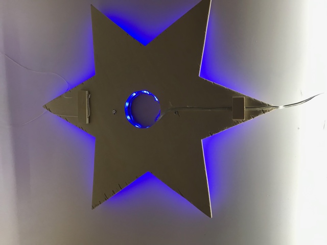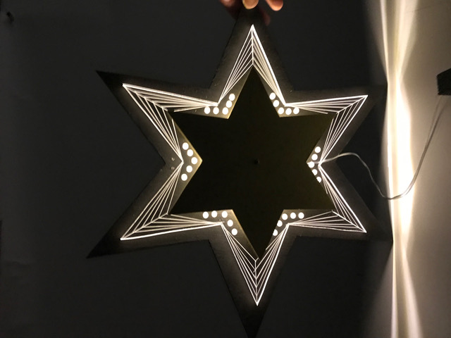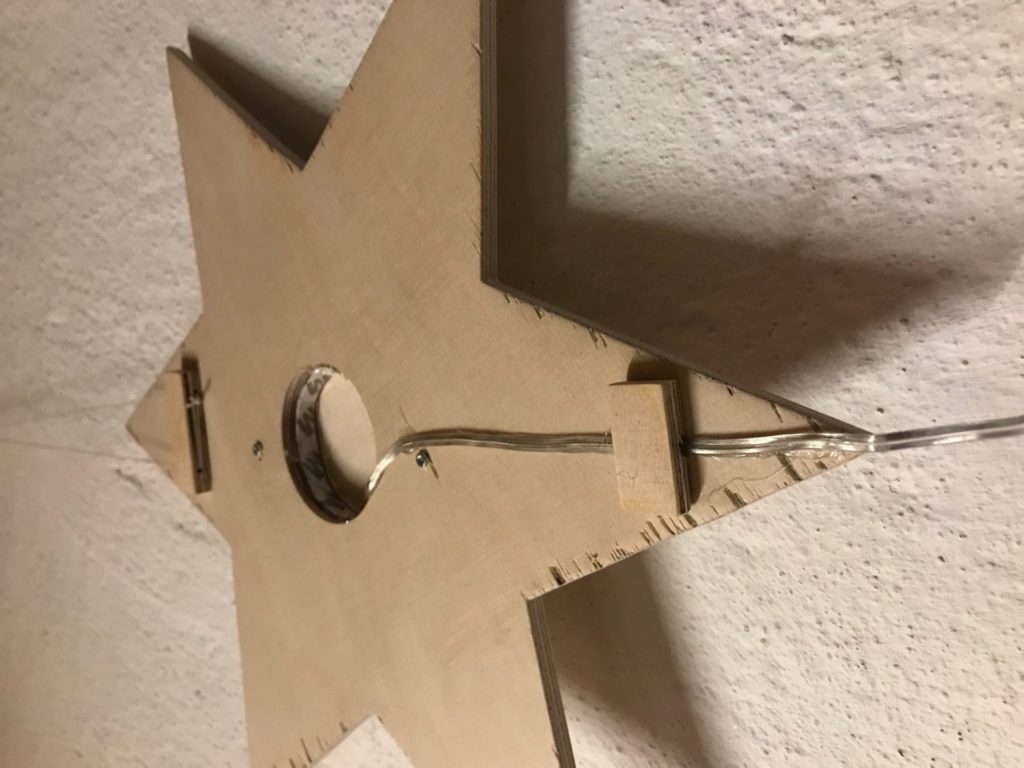 Löte an dein Leuchtband eine genügend lange Doppellitze und montiere anschliessend das Leuchtband im Kanal deiner Figur. Klebe nun die Frontseite auch fest, suche den Schwerpunkt deiner Figur und montiere dort eine Aufhängung für deine Deckenleuchte. Schliesse das Netzgerät an und teste deine Deckenleuchte im Dunkeln.