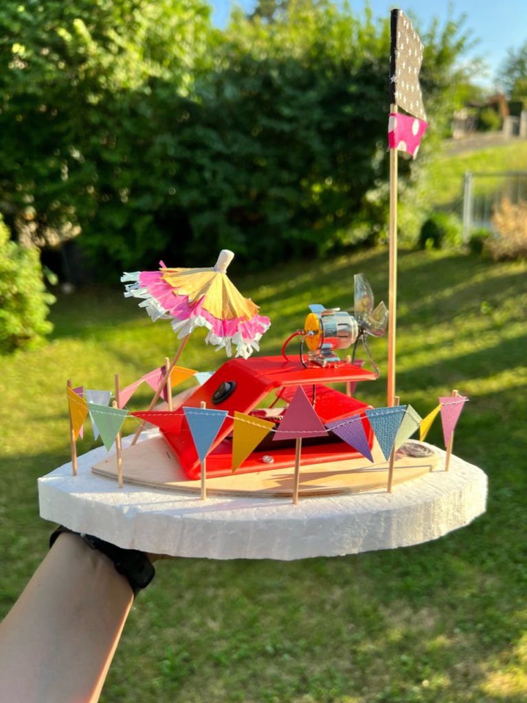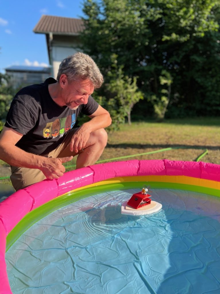 Evtl. kleiner Swimmingpool mit einer Styroporinsel in der Mitte, um welche die Boote ihre Runden drehen können.