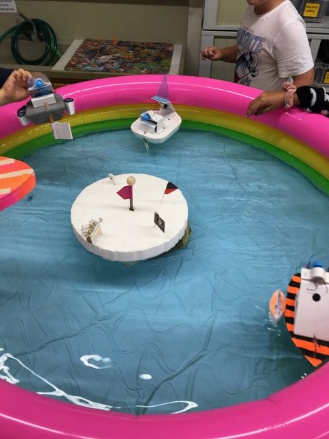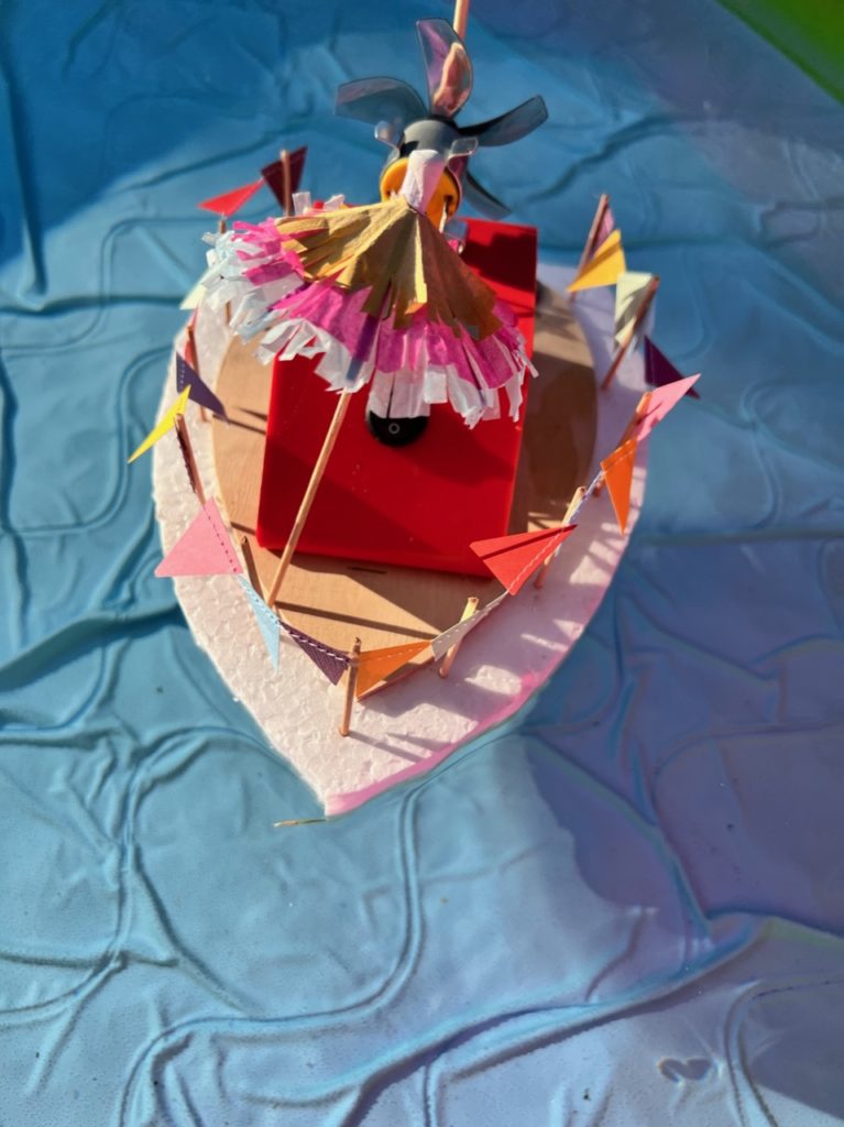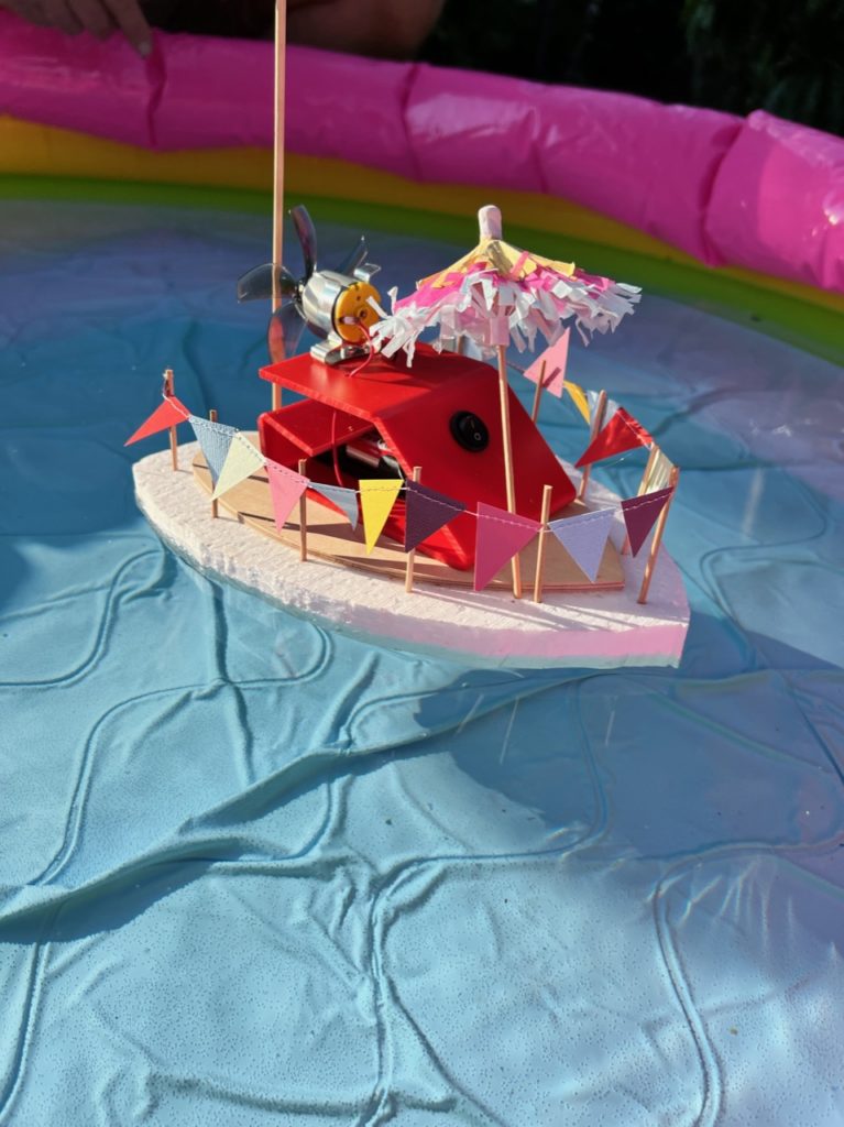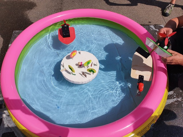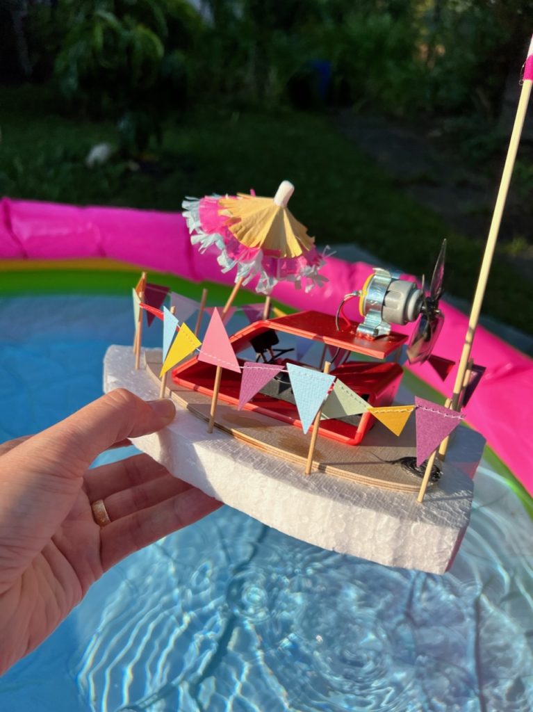 Führt einen Tüftelwettbewerb durch. Wessen Boot legt eine vorgegebene Strecke (z.B. fünf Runden) in einem Pool möglichst schnell zurück?