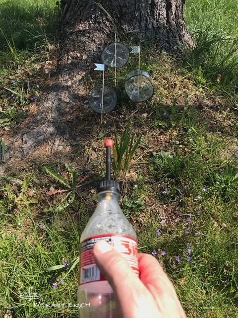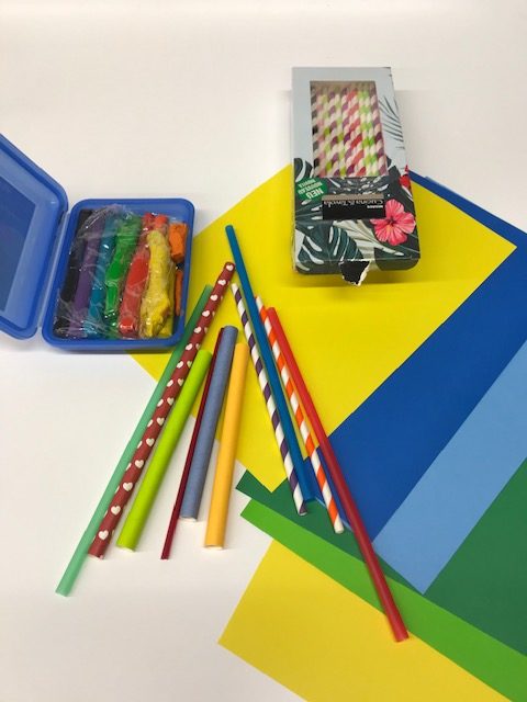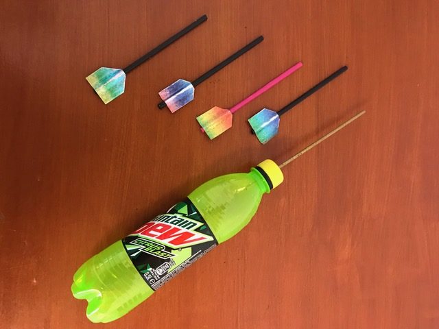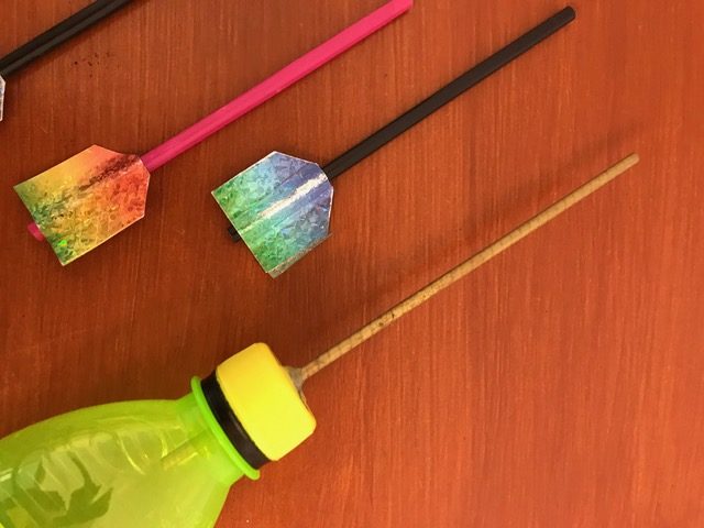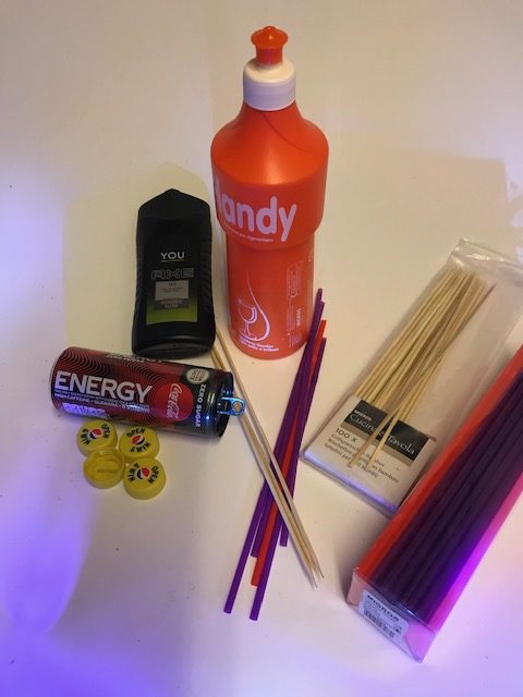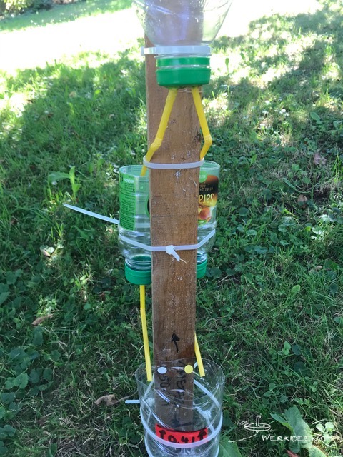 - Holzbrett oder Dachlatten, PET-Flaschen, Röhrchen, Schlauchstücke, Kabelbinder