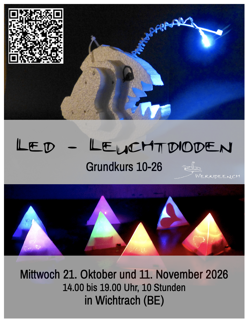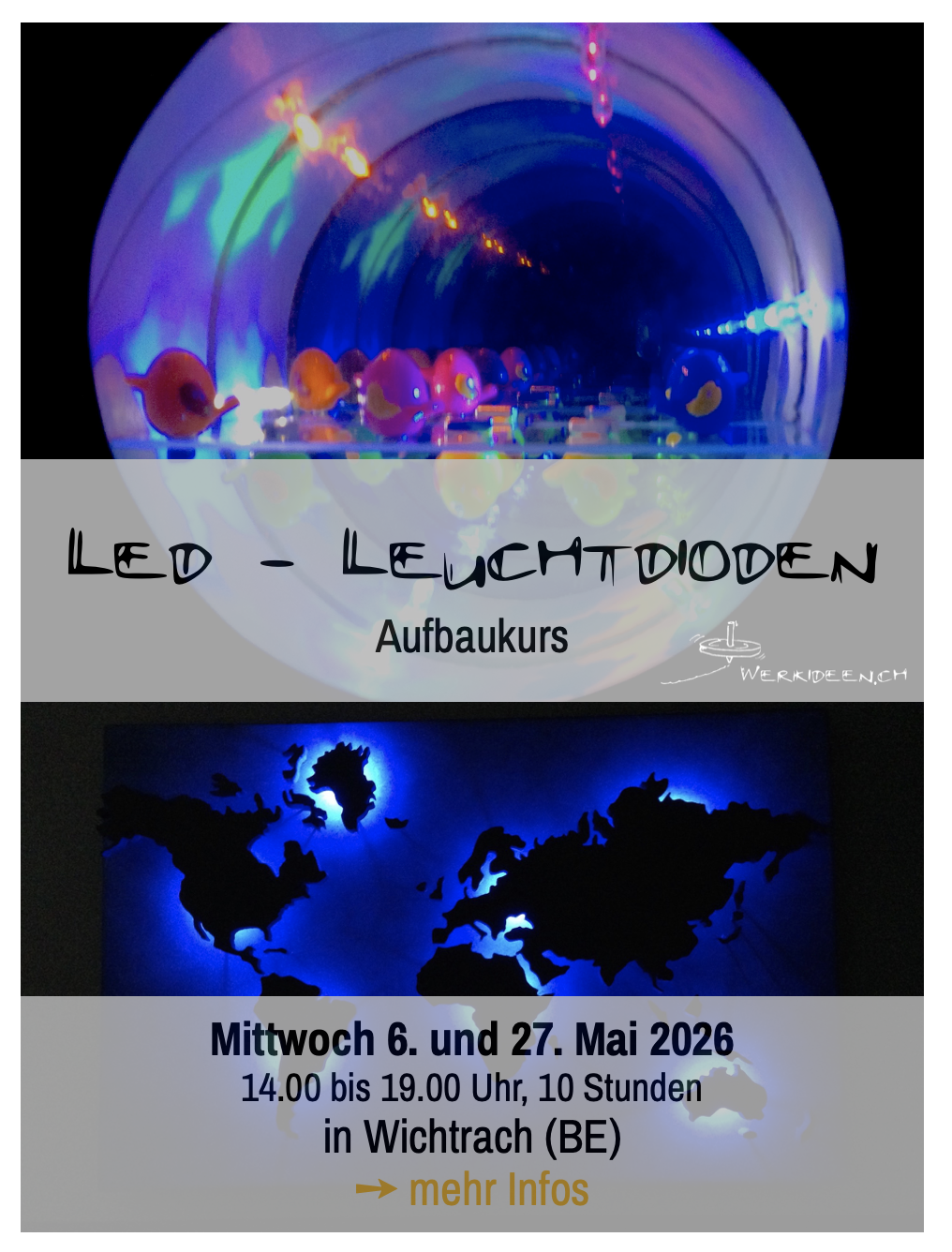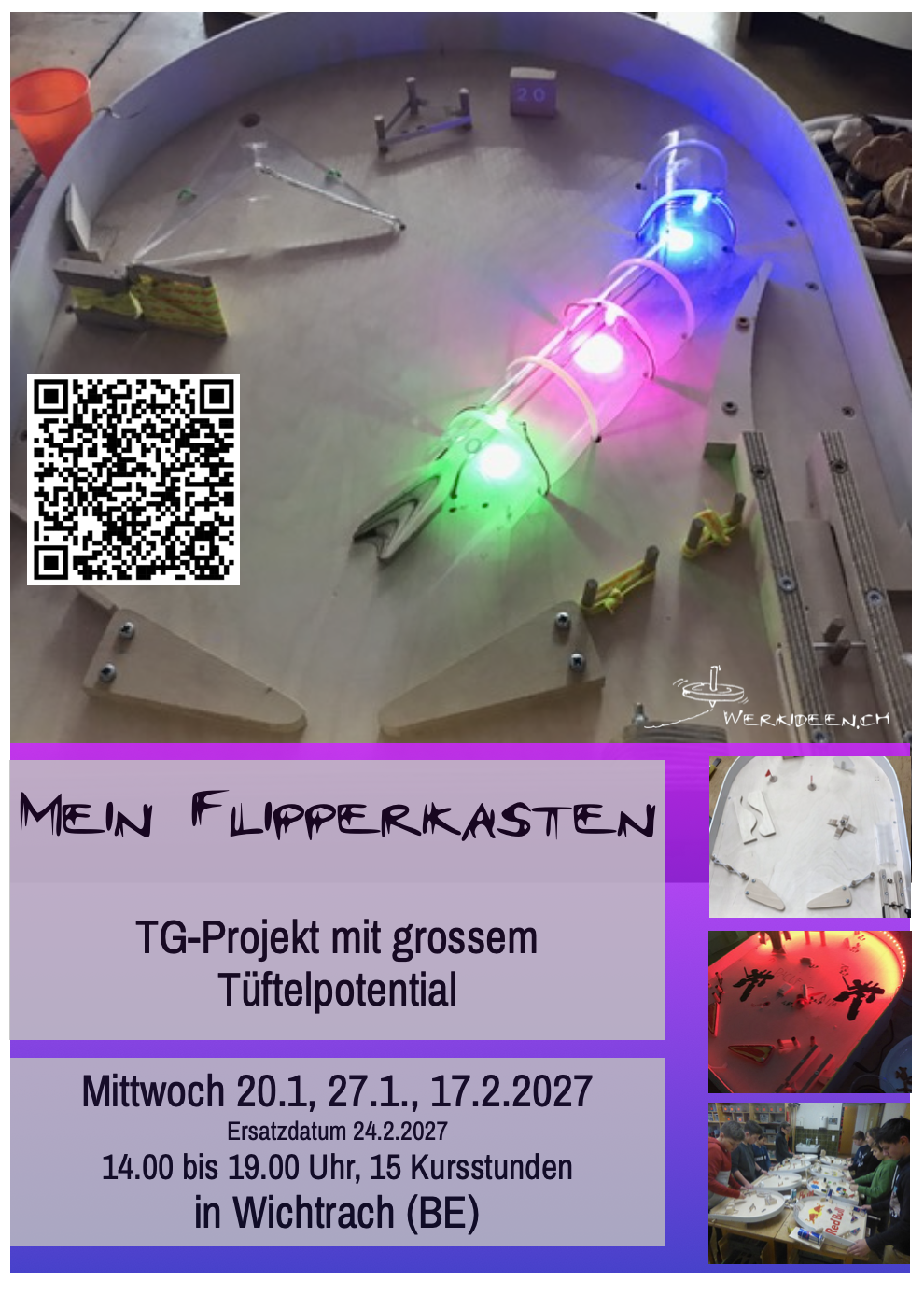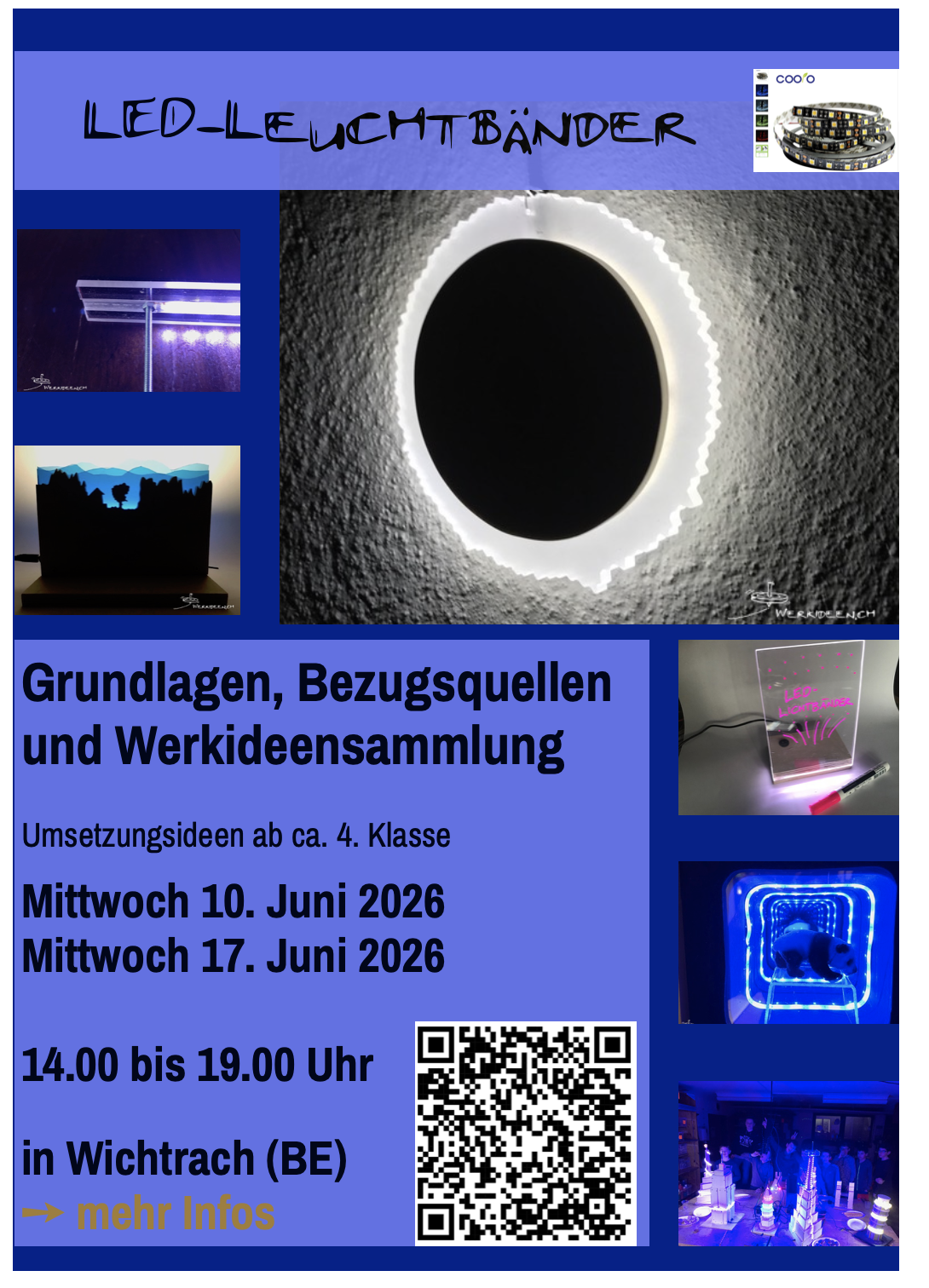 Ich schreibe über meine eigene Website werkideen.ch Kurse aus in Wichtrach /BE. Dort habe ich meine Infrastruktur aufgebaut und den Werkraum so eingerichtet, dass auch Kurse mit bis zu 12 Teilnehmenden durchgeführt werden können. Lehrpersonen im Kanton Bern können sich das Kursgeld von der ERZ zurück erstatten lassen.