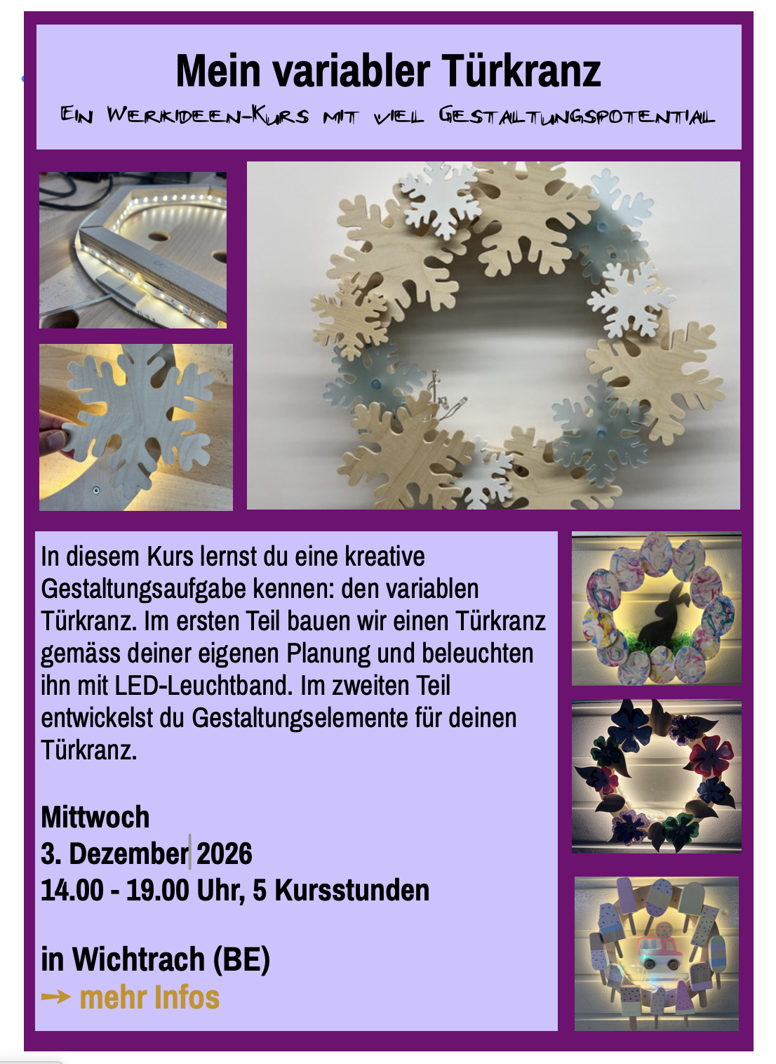 Mehr zu meinen Kursen finden Sie hier -> http://www.werkideen.ch/ueber/