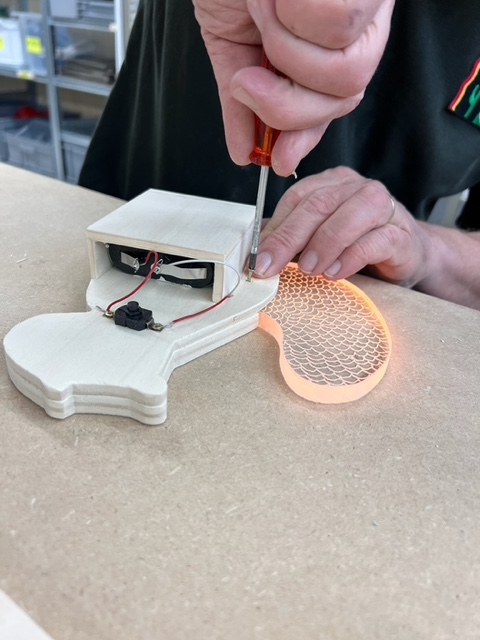 Du kannst an diesem Kurs ein Tier nach eigenen Ideen gestalten und mit einem LED-Leuchtband beleuchten.